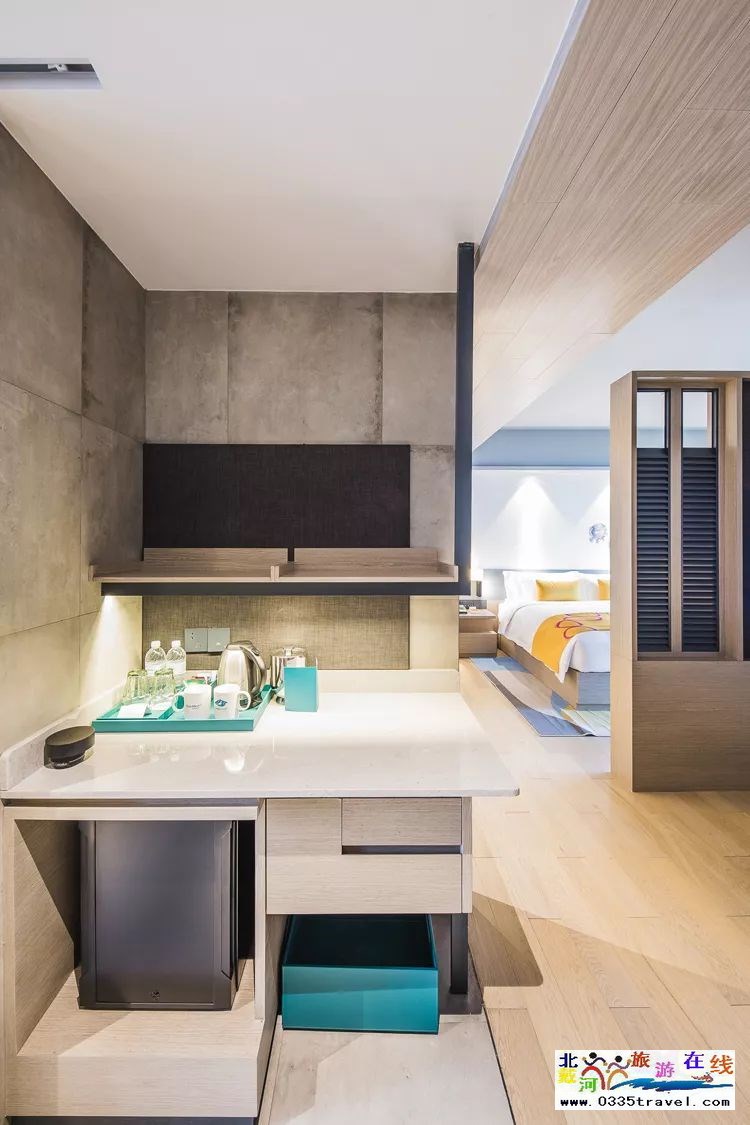 房間內(nèi)同樣帶有迷你吧,給孩子帶的水果可以放在小冰箱內(nèi)。