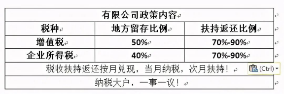 稅收獎(jiǎng)勵(lì)返還的主要內(nèi)容就是:在增值稅、企業(yè)所得稅的地方留存部分的基礎(chǔ)上,進(jìn)行70%-90%比例的稅收返還,一是對(duì)企業(yè)納稅的獎(jiǎng)勵(lì);同時(shí)也是緩解企業(yè)的稅負(fù)壓力和減輕企業(yè)運(yùn)營(yíng)成本,以期待企業(yè)做大做強(qiáng),后期為政府提供更多的稅收收入。