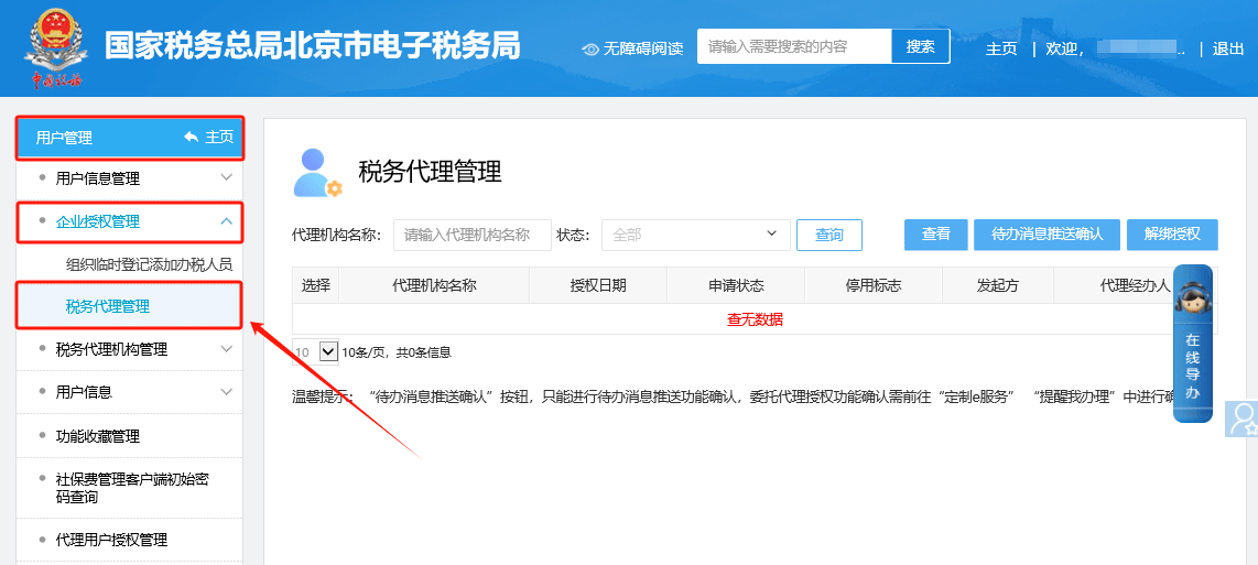 二、用戶管理—企業(yè)授權(quán)管理—稅務(wù)代理管理進行確認(rèn)。