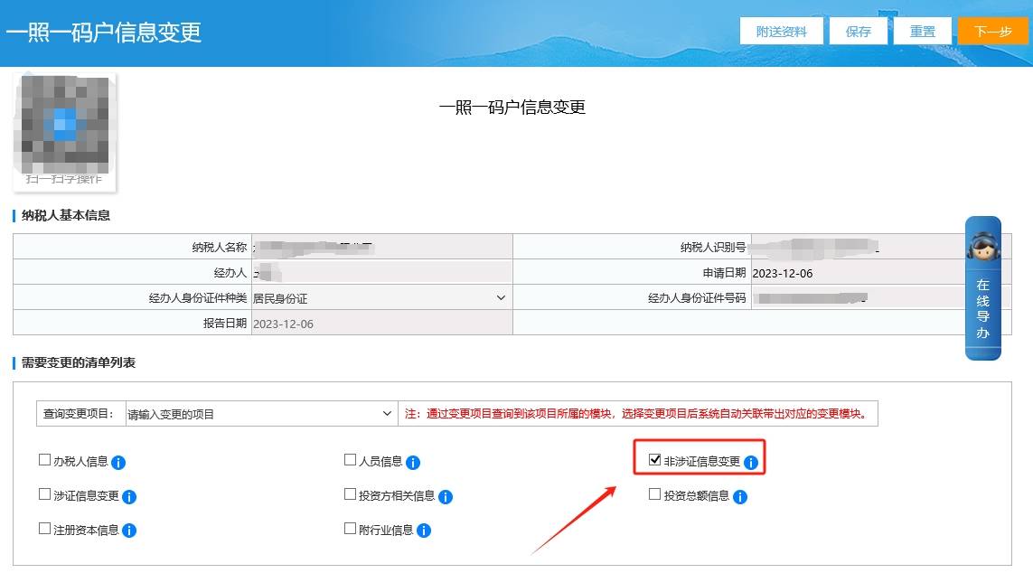 三、一照一碼戶信息變更選擇非涉證信息進行修改。