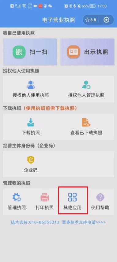 在微信中搜索并打開(kāi)“電子營(yíng)業(yè)執(zhí)照”小程序。