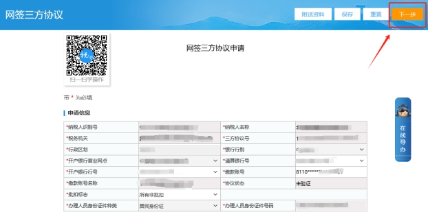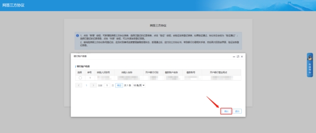 五、在三方協(xié)議申請表界面修改批扣標志,點擊下一步提交,完成后可返回網(wǎng)簽三方協(xié)議界面選擇勾選這條銀行信息并點擊驗證,協(xié)議狀態(tài)變?yōu)轵炞C通過說明三方協(xié)議簽成功。
