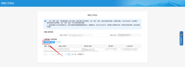 三、網(wǎng)簽三方協(xié)議頁面,點擊新增按鈕。