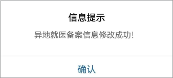 4、點(diǎn)擊【確認(rèn)】后,居民的異地就醫(yī)備案信息已成功修改。